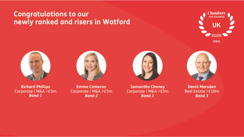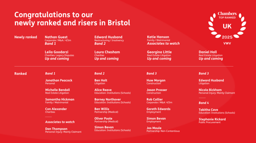 - Real Estate: Bristol and Watford teams were both recognised. Daniel Hall and Georgina Little received 'Up and Coming' rankings and Head of Real Estate, Michelle Bendall, maintained her Band 1 ranking.